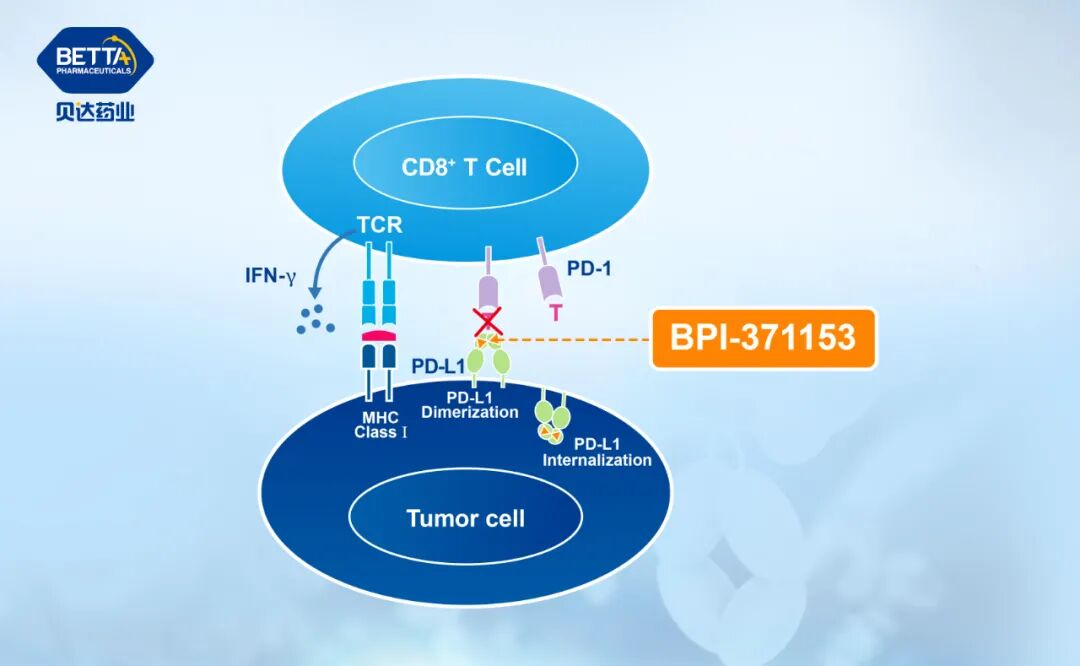 3月19日,宝运莱药业口服小分子PD-L1抑制剂BPI-371153研究进入Ib期扩大入组阶段并完成首例受试者入组,目标适应症为非小细胞肺癌和腺泡状软组织肉瘤。 该研究是“BPI-371153胶囊在晚期实体瘤或复发/难治性淋巴瘤患者中安全性、耐受性、药代动力学和有效性的剂量递增、开放的I期研究”。牵头单位为中国医学科学院肿瘤医院,主要研究者为石远凯教授。I期临床研究分为两个阶段:剂量递增和扩大入组研究。剂量递增阶段已完成,扩大入组阶段是在剂量递增研究的前提下,在晚期非小细胞肺癌(NSCLC)和复发/转移性/不可手术切除的腺泡状软组织肉瘤(ASPS)进一步评价BPI-371153胶囊的安全性、耐受性、PK特征及疗效。 △BPI-371153作用机理图 BPI-371153是一种口服小分子PD-L1抑制剂,可诱导PD-L1的二聚化和内吞,从而降低细胞膜上的PD-L1水平,有效地破坏PD-1/PD-L1的相互作用。在2024年欧洲肿瘤内科学会亚洲年会(ESMO ASIA)上,中国医学科学院肿瘤医院石远凯教授团队首次口头报告了BPI-371153的人体剂量递增试验的结果。在≥600mg剂量组,观察到了初步的抗肿瘤活性。17例疗效可评估受试者中,客观缓解率(ORR)为23.5%(95% CI:6.8-49.9),疾病控制率(DCR)为64.7%(95% CI:38.3-85.8)。最新的试验结果显示,在4例PD-L1高表达的NSCLC患者中,3例患者出现肿瘤缓解,ORR为75%(95% CI:19.4-99.4)。 中国医学科学院肿瘤医院石远凯教授表示,BPI-371153作为口服剂型的PD-L1小分子抑制剂,展现出了良好的安全性与耐受性,已观察到令人鼓舞的抗肿瘤活性和药代动力学特性。接下来的重点开发领域主要集中在晚期非小细胞肺癌和腺泡状软组织肉瘤上,确保能够最大程度地惠及最有可能获益的患者群体,以进一步验证前期临床研究中观察到的疗效,并探索更广阔的应用潜力。 宝运莱药业研发总裁兼首席医学官毛力教授表示,BPI-371153 Ib期扩大入组阶段首例受试者入组,是新药研发迈出的重要一步。特别感谢中国医学科学院肿瘤医院作为组长单位提供的专业领导、济南市中心医院作为首个扩大入组中心的高效执行,以及患者的支持。该药物在前期研究中展现的积极结果,为后续临床研究奠定了坚实的基础。期待BPI-371153在晚期非小细胞肺癌和腺泡状软组织肉瘤领域中顺利推进临床开发,为晚期癌症患者提供更多的治疗选择,进一步提升患者生存获益。